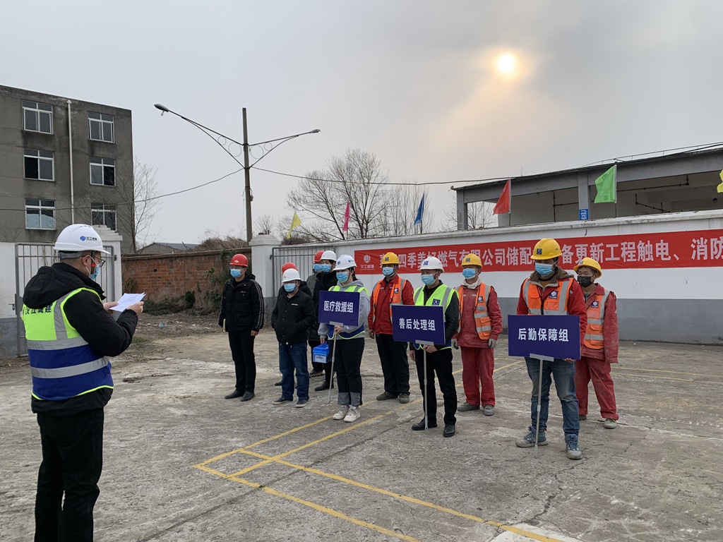 为了进一步增强员工的应急救援意识和技能,落实“安全第一、预防为主、综合治理”的方针,2月22日,汉江城建第一分公司四季美好燃气储配站设备更新工程项目部认真组织开展了触电事故应急演练和消防应急演练专项培训活动,项目部全体人员参加了本次培训。