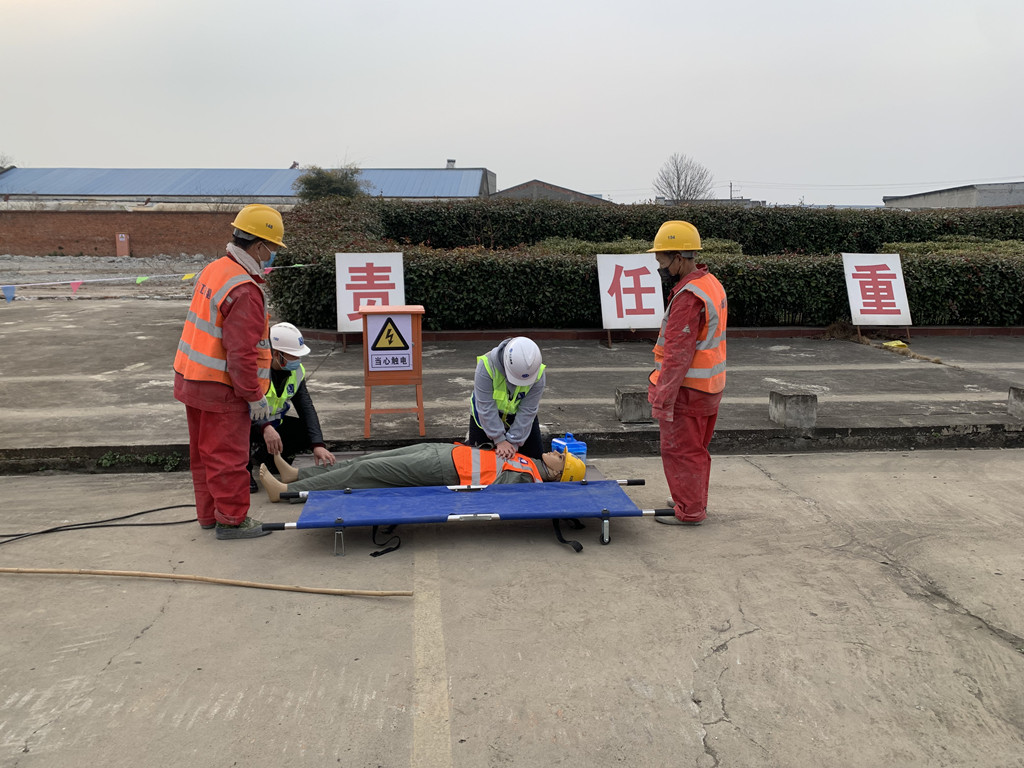 培训首先观摩学习了触电受伤人员的救护方法和灭火救护知识,随后,在安全人员指挥下,项目部全体人员协同联动、积极参与,共同完成了工人触电事故应急救援演练,通过关闭电源,抢救伤员,隔离事故现场等救援环节,使伤员成功脱离危险。过程组织有序、分工到位、有条不紊,达到了培训的预期效果。