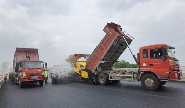 5月31日,第三分公司按照南漳县发展大道改建工程图纸设计要求,进行沥青上面层SMA沥青玛蹄脂沥青混凝土试验段的铺筑。沥青玛蹄脂