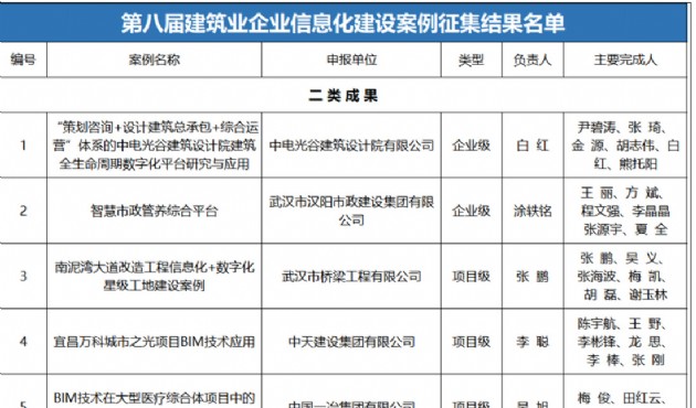 近日,中国建筑业协会工程技术与BIM应用分会对第八届建筑业企业信息化建设案例征集评选结果进行了公示,由汉江城建申报的“