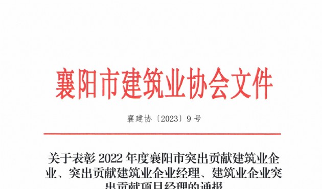 3月28日,襄阳市建筑业协会对2022年度襄阳市突出贡献建筑业企业、突出贡献建筑业企业经理、建筑业企业突出贡献项目经理进行表彰,