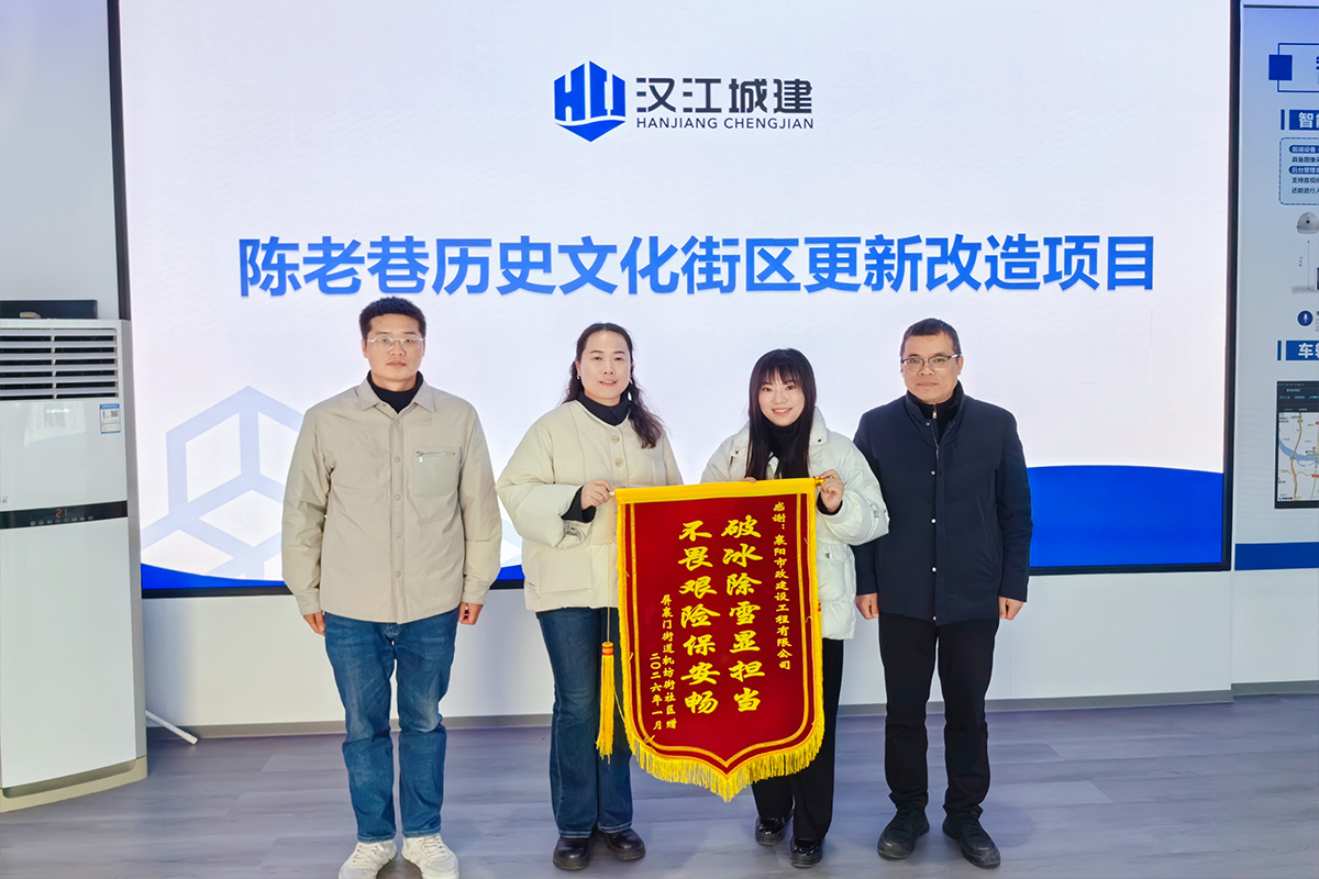 “多亏了你们党员突击队的及时援手,迅速清除了道路结冰,孩子们上学路安全了,我们出行也彻底放心了!”为表达诚挚谢意,机坊街社区林书记专程向项目部送来锦旗。锦旗上熠熠生辉的标语:“破冰除雪显担当,不畏艰险保安畅”。情真意切的语句,既是对此次除冰行动的高度认可,更是对项目团队践行“我为群众办实事”初心使命的生动诠释。